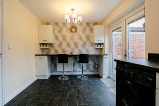 Dining Area - The dining area comprises; upvc double glazed French doors giving access to rear gardens, radiator and vinyl tiled effect floor covering.