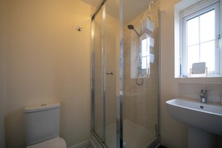 En-Suite Shower Room - Having tiled shower cubicle, low flush wc, pedestal wash hand basin, radiator, wood effect vinyl flooring covering, extractor fan to ceiling and upvc double glazed window to front.