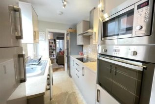 Kitchen - 1.88m x 2.92m (6'2 x 9'7) - Window and door to the side, tiled flooring, light point and radiator. High spec fitted kitchen with a full range of wall and base units having built-in mid level oven, gas hob with extractor fan above. plumbing for washing machine, space for fridge freezer and sink with drainer to the side. Built-in Microwave.