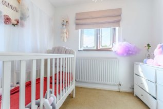 BEDROOM FOUR: 8'8'' (2.64m) (max) x 8'5'' (2.57m) (max) Having double glazed window to front elevation, central heating radiator and built-in storage cupboard.