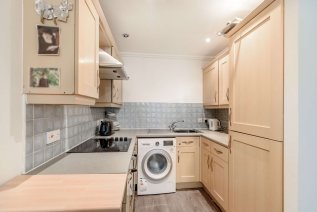 An excellent size room with laminate flooring, double glazed window and electric storage heaters. A good size open planned kitchen with a built in fridge/freezer, washing machine, electric oven and hob.